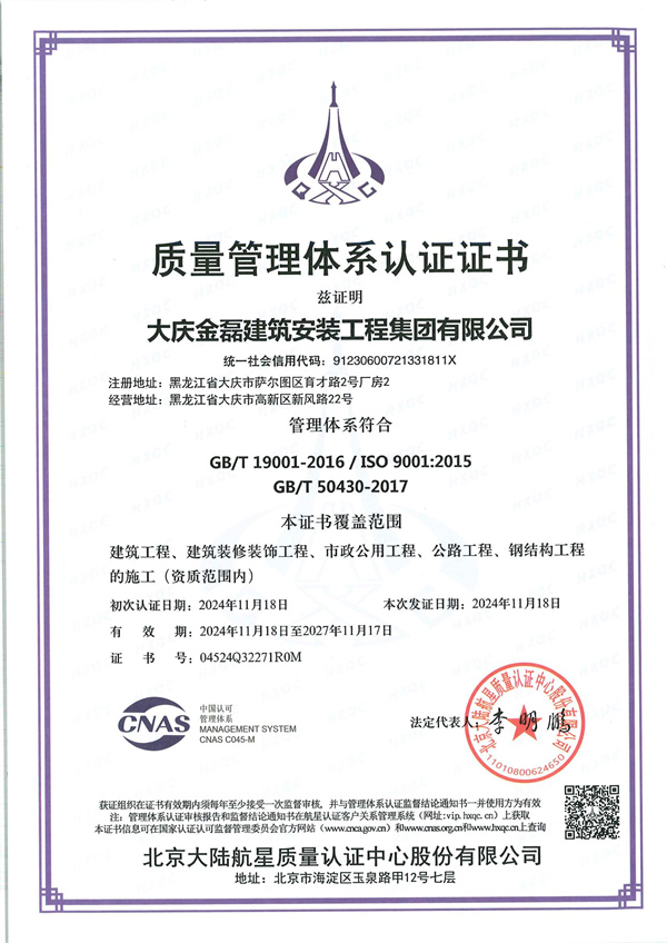 質(zhì)量管理體系認(rèn)證證書